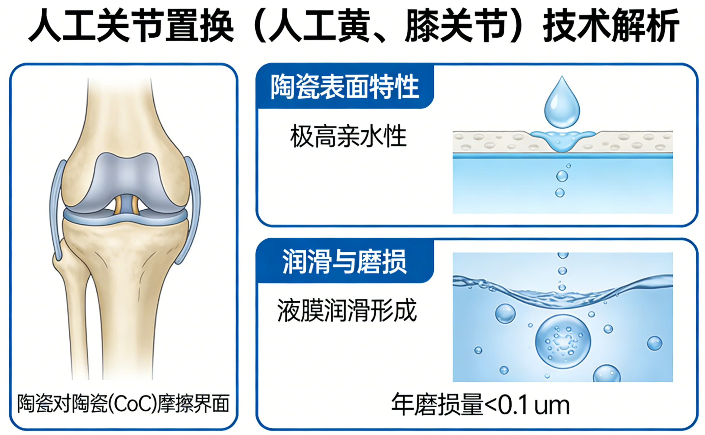 L’interfaccia di attrito ceramica su ceramica (CoC) è attualmente riconosciuta come la soluzione migliore. A causa dell'idrofilia estremamente elevata della superficie ceramica, tra i giunti può formarsi un film lubrificante liquido e il suo volume di usura annuale è solitamente inferiore a 0,1 micron , allungando la speranza di vita degli oggetti importati da 15 anni a più di 30 anni. 2. Restauro dentale di precisione